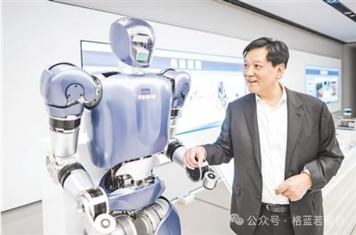 11月5日,在武漢產(chǎn)業(yè)創(chuàng)新發(fā)展研究院展廳,武漢格藍(lán)若精密技術(shù)有限公司董事長竇峭奇和該公司開發(fā)的人形機(jī)器人——勞動者1號(小名“大壯”)。(湖北日報(bào)全媒記者 任勇 攝)湖北日報(bào)全媒記者 張真真 李源 楊然 成熔興